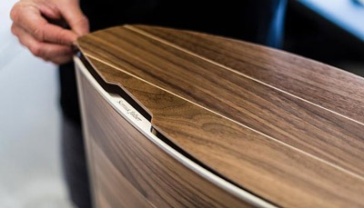 Tout comme les côtés de l’enceinte, le déflecteur avant et le dessus sont en bois naturel noyer ou wengé fini à la main, dans une plaque en aluminium moulé sous pression. Leurs designers ont souhaité rendre hommage au matériau le plus représentatif de Sonus faber, ce qui en fait encore plus un porte-étendard.