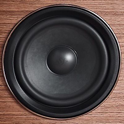 Les deux woofers de 165 mm de la Sonus faber Sonetto V G2 sont dotés de membranes en pulpe de papier avec un motif Camélia et entourées d’un anneau de démagnétisation en aluminium. Cette conception asymétrique brise les modes circulaires du haut-parleur, améliorant la linéarité et réduisant les interférences.