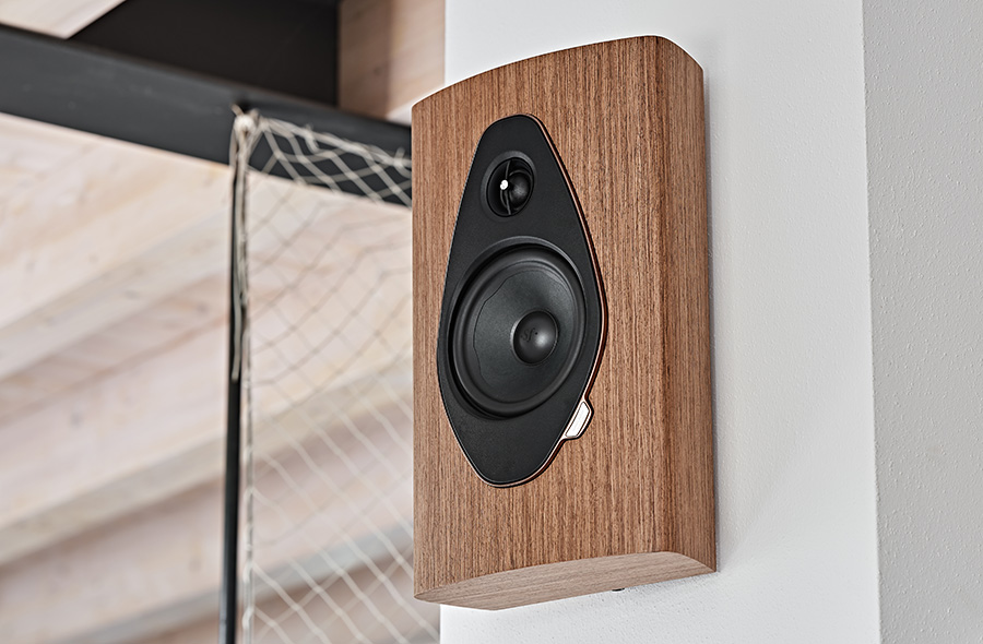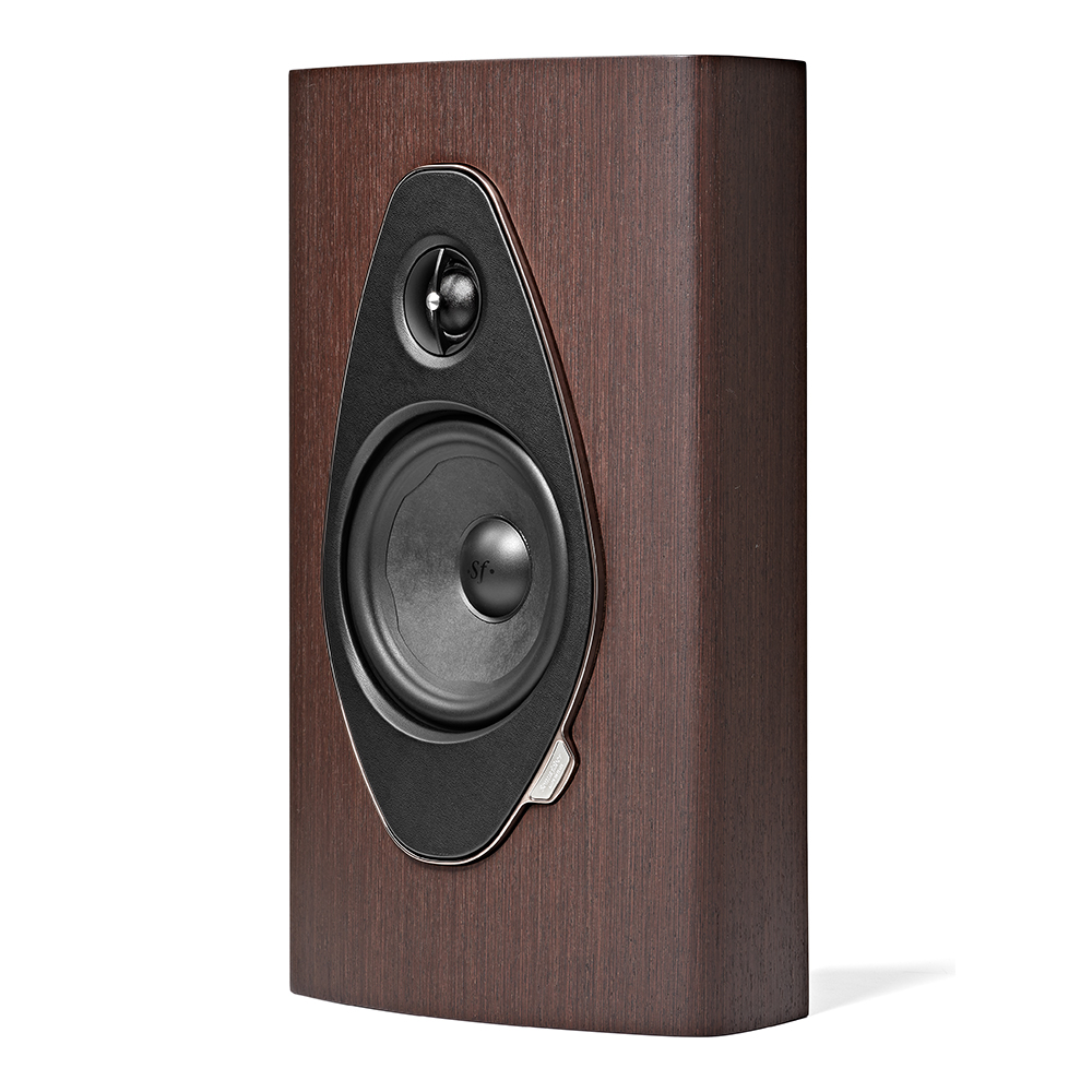 L’enceinte murale Sonus faber Sonetto Wall G2 arbore une silhouette raffinée, inspirée des instruments à cordes, tel le luth.
