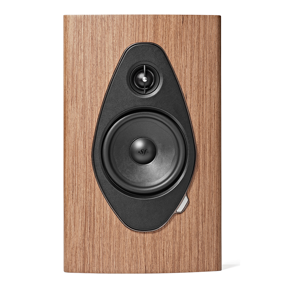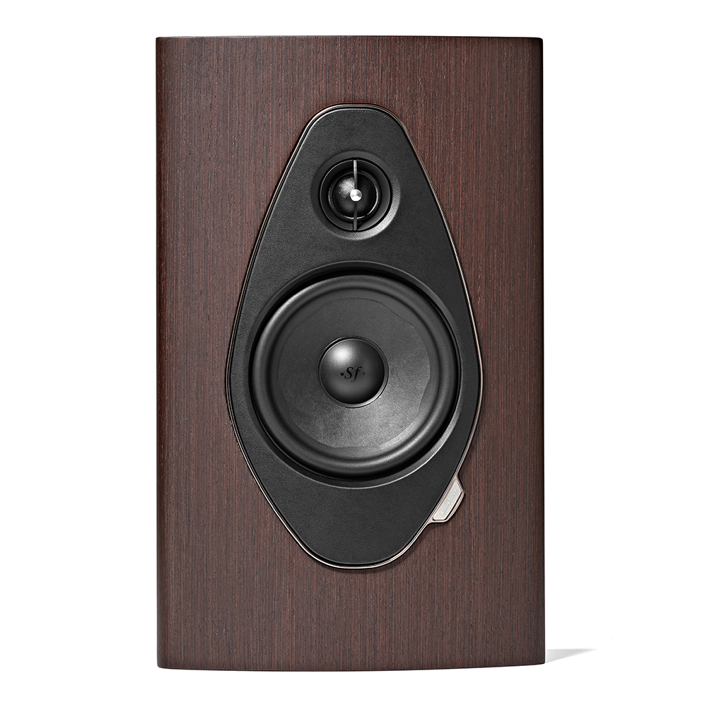 Son coffret en bois véritable, disponible en finitions noyer, wengé et piano noir, est complété par un devant en cuir cousu à la main, portant le logo Sonus faber.