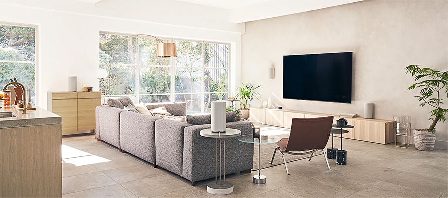 Le système Home Cinema est compatible avec les appareils équipés de l’Assistant Google et de Chromecast intégré, ainsi qu’avec Amazon Alexa. Pour intégrer le HT-A9 à votre groupe d’enceintes, utilisez l’application Google Home. Vous pourrez alors écouter de la musique ou ajuster le volume en utilisant simplement votre voix.