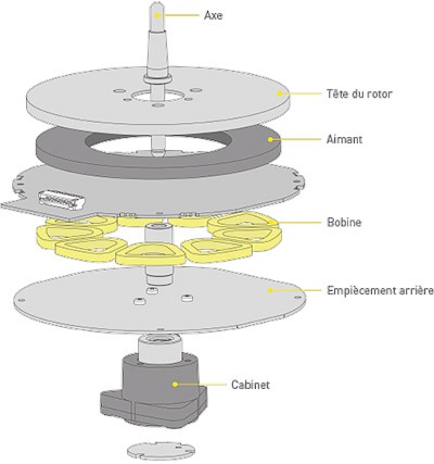 - Base du bras repose sur un roulement de haute précision