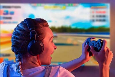Le vidéoprojecteur Epson EH-LS12000B est idéal pour les gamers avec un temps de retard à l’affichage de 19,4 ms en mode Rapide et des entrées HDMI 2.1 qui permettent de sélectionner la fréquence de sortie jusqu’au 4K 120hz à 40Gbps.