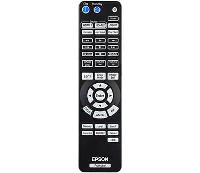 La télécommande rétroéclairée du vidéoprojecteur Epson EH-LS12000B offre un contrôle complet de l’appareil, avec des touches d’accès direct aux fonctions pratiques telles que le mode de jeu à faible latence et les différents modes d’image.