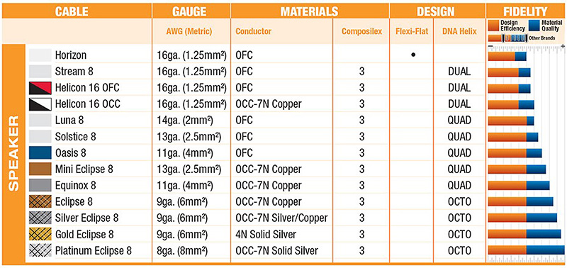 Par rapport à la série 7, Wireworld a amélioré la clarté, la dynamique, la composition du son et la focalisation de l’image. Le champ électromagnétique qui déplace le signal dans les câbles d’enceintes de la série 8 a été renforcé grâce à l’augmentation des groupes de torons.