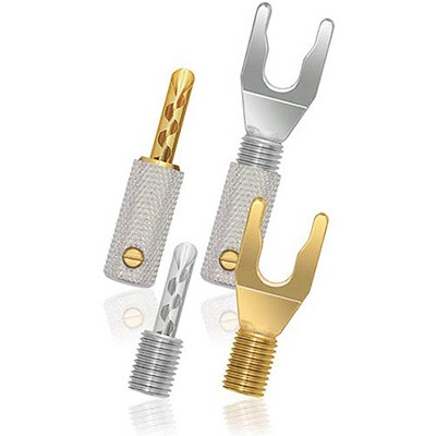 Avec le système de terminaison interchangeable Uni-Term, il est possible de choisir le type de terminaisons le plus adapté à vos besoins. Dans le but de pouvoir utiliser vos câbles sur plusieurs appareils, tous les câbles de haut-parleurs Wireworld sont livrés avec des connecteurs Uni-Term (sauf les câbles Horizon). Pratique, rapide et construit avec des matériaux haut de gamme tels que l’argent OFC ou le plaqué argent OFC + or. Il est possible de passer d’un connecteur fourche à un connecteur banane en quelques secondes.