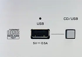 Entrée USB en façade compatible MP3 / WMA et WAV / FLAC en FS 44.1-96 kHz/16-24 bits.