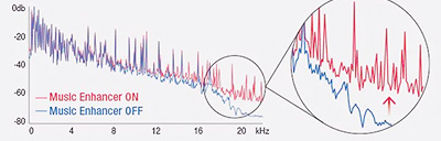 La musique encodée dans un format compressé numériquement réduit la réponse en fréquence et la dynamique. Le Compressed Music Enhancer de Yamaha utilise un traitement de signal numérique sophistiqué faisant appel à des algorithmes exclusifs afin de restaurer ce qui a été perdu,