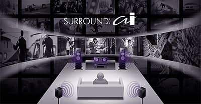 La technologie IA intégrée au DSP analyse en permanence le flux audio et crée l’effet Surround optimal. Cette IA analyse instantanément les scènes en se concentrant sur des éléments sonores distincts tels que les dialogues, la musique de fond, les sons ambiants et les effets sonores, et optimise automatiquement l’effet Surround en temps réel.